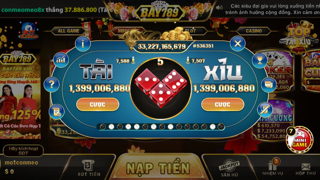 Anh em nên có trải nghiệm đầu tiên với tựa game Tài xỉu MD5 tại game bài Bay789. Trò chơi này có lối chơi vừa hiện đại, hấp dẫn lại dễ nhớ dễ thực hiện. Đồng thời anh em sẽ được kiểm tra và xác nhận kết quả ngay lập tức khi trò chơi vừa kết thúc thông qua công nghệ MD5. Điều này sẽ giúp anh em an tâm hơn khi gửi gắm lòng tin tại Bay789.